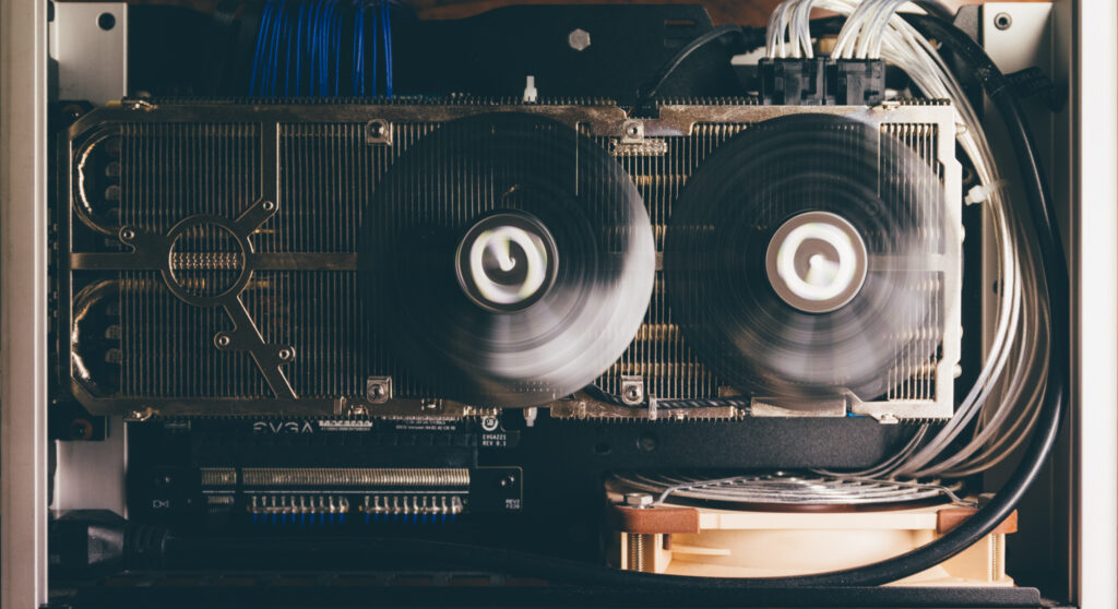 因為 EVGA 3090 的厚度較高,在安裝側板、不打磨的前提下,只好將最左邊的風扇拆除(不然會卡到側板),並將螺絲當作支撐,避免剩下的兩個風扇運轉時與側板摩擦。